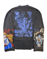 The cut and contrasted re-attached sleeves offer a unique patchwork aesthetic, embodying the raw, dystopian future of Tokyo-3. A gradient black fabric flows from left to right, mirroring the darkness that creeps into the lives of those who pilot the Evas. The cut and re-attached collar, now thinner and more refined, adds an edge of rebellion, while the extremely distressed sleeves and hem reflect the battle-worn state of those who fight for survival.