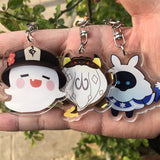 The overall length of the keychain is about 4 inches. The Genshin Impact Figure is 2.4" high (6cm) by 1.6" (4cm) in width.