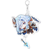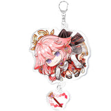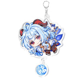 The overall length of the keychain is about 4 inches. The Genshin Impact Figure is 2.4" high (6cm) by 1.6" (4cm) in width.