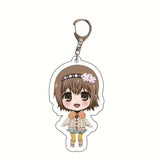 The overall length of the keychain is about 4 inches. The anime figure is 2.4" high (6cm) by 1.6" (4cm) in width.