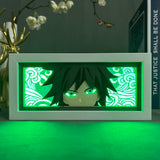 • Once started, the RGB LED lights inside the box will turn on and shine through the carefully designed and cut paper layers, illuminating the custom 3D design of your favorite anime character.