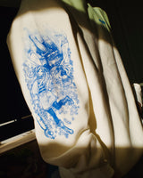 Each piece is a labor of passion. Using high-quality, custom-mixed blue ink, every design is screen printed by hand, not by automated machines or mass production processes. This isn't just apparel – it's a tribute from a fellow anime lover who values craftsmanship and dedication. Heat-treated to preserve its vibrant print, this crewneck will stand the test of time, remaining your favorite go-to for years to come.